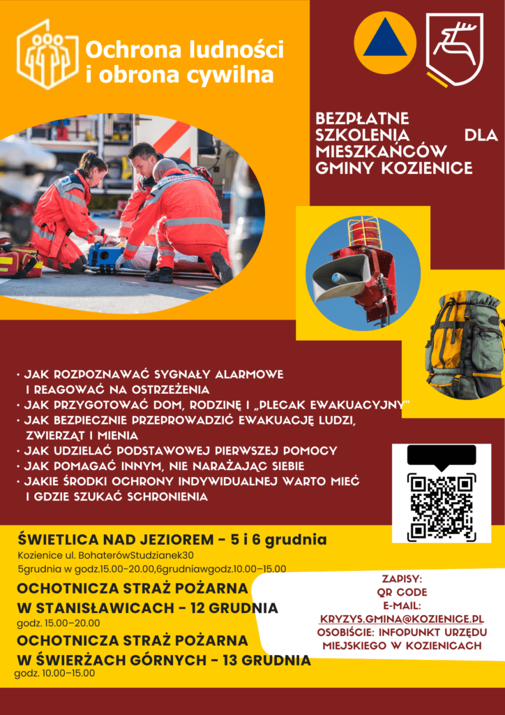 Ochrona ludności i obrona cywilna. Bezpłatne szkolenia dla mieszkańców Gminy Kozienice